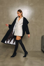This sleek black coat features a bold Lilly print on the front, adding an artistic touch to a classic silhouette. A perfect blend of elegance and individuality, it’s designed to make a statement while keeping you effortlessly stylish.