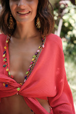 The Coraille Shells Set combines effortless style with coastal elegance. Featuring shells delicately placed along the trim, this set adds a unique and natural touch to your wardrobe, perfect for capturing the essence of beach-inspired fashion.