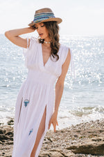 Elegantly whimsical, the White Jellyfish Embroidery Dress features delicate jellyfish embroidery that adds a serene, artistic touch. The soft white fabric and intricate design create a dreamy, ethereal look, perfect for making a unique statement with a hint of oceanic beauty.