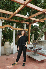 Relax in style with the Black Kira Lounge Set, featuring delicate bow and arrow embroidery for a touch of understated elegance. Crafted for comfort and designed with a chic, modern edge, this set brings a cozy yet sophisticated vibe to your loungewear collection.