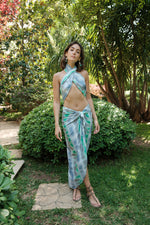 Elevate your look with this effortlessly chic set, featuring a wrapped skirt and a backless halter wrap top. The flowy skirt offers an easy, flattering fit, while the backless top brings a touch of bold, bohemian charm. Perfect for breezy days or nights out with a carefree spirit.