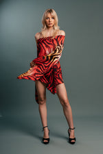 Turn heads in this silk mini dress with striking tiger stripes. Lightweight and stylish, perfect for every occasion.