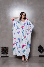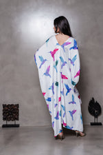 A stunning blend of soft hues and delicate bird motifs, the Aquarel Birds Kaftan brings a serene, artistic touch to your wardrobe. With its flowing silhouette and watercolor-inspired design, this kaftan offers both comfort and beauty, perfect for any occasion where effortless elegance is key.