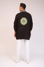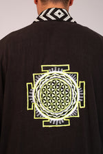 Bold zebra print meets vibrant neon accents in this striking kimono. With a Yantra embroidery on the back, it blends modern energy with spiritual design for a unique statement piece.