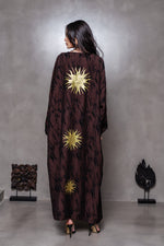 Embrace warmth and style with the Brown Sun Kimono. Its rich, earthy tones and sun-inspired design bring a relaxed yet refined vibe to your wardrobe. A versatile piece, perfect for layering over any outfit to elevate your look with effortless elegance.