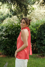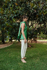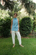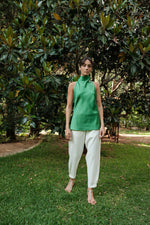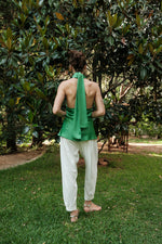 This elegant halter top features a beautiful green floral pattern and satin floral detailing on the neck for a touch of sophistication. The flowing design offers both comfort and style, making it the perfect addition to your collection for any occasion.