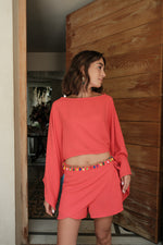Dive into a vibrant blend of coral and soft tones with the Coraille Seychelles Set. Adorned with colorful shells at the waist of the skirt, this set exudes a tropical, boho flair, perfect for a laid-back yet stylish look.