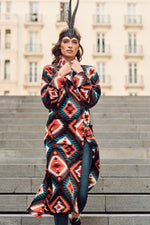 - Brown Tribal Long Fleece Coat